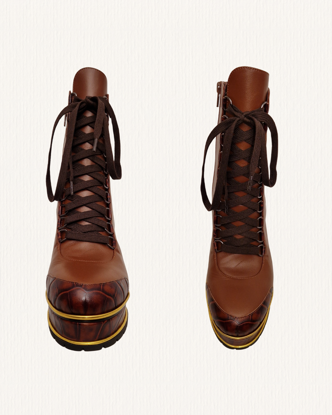 CALFSKIN | ALLIGATOR PRINTED CALF LEATHER | GOLDEN PIPING | VIBRAM SOLE